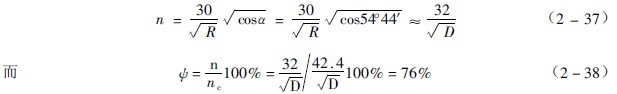 應(yīng)用公式(2-36)來決定轉(zhuǎn)速時,有兩種方法。首先用外層球有落下高度來定轉(zhuǎn)速。若取外層球的半徑即磨機的內(nèi)半徑,由公式(2-2)得到