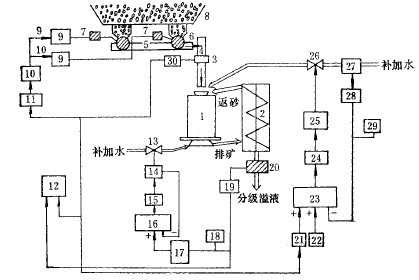 3)根據(jù)濃度計測量分級機溢流濃度,調(diào)節(jié)分級機補加水,以調(diào)節(jié)分級溢流濃度的閉環(huán)控制。
