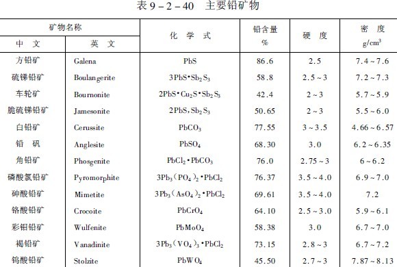主要鉛、鋅礦物列于表9-2-40和9-2-41。